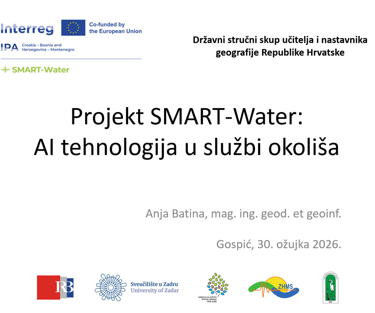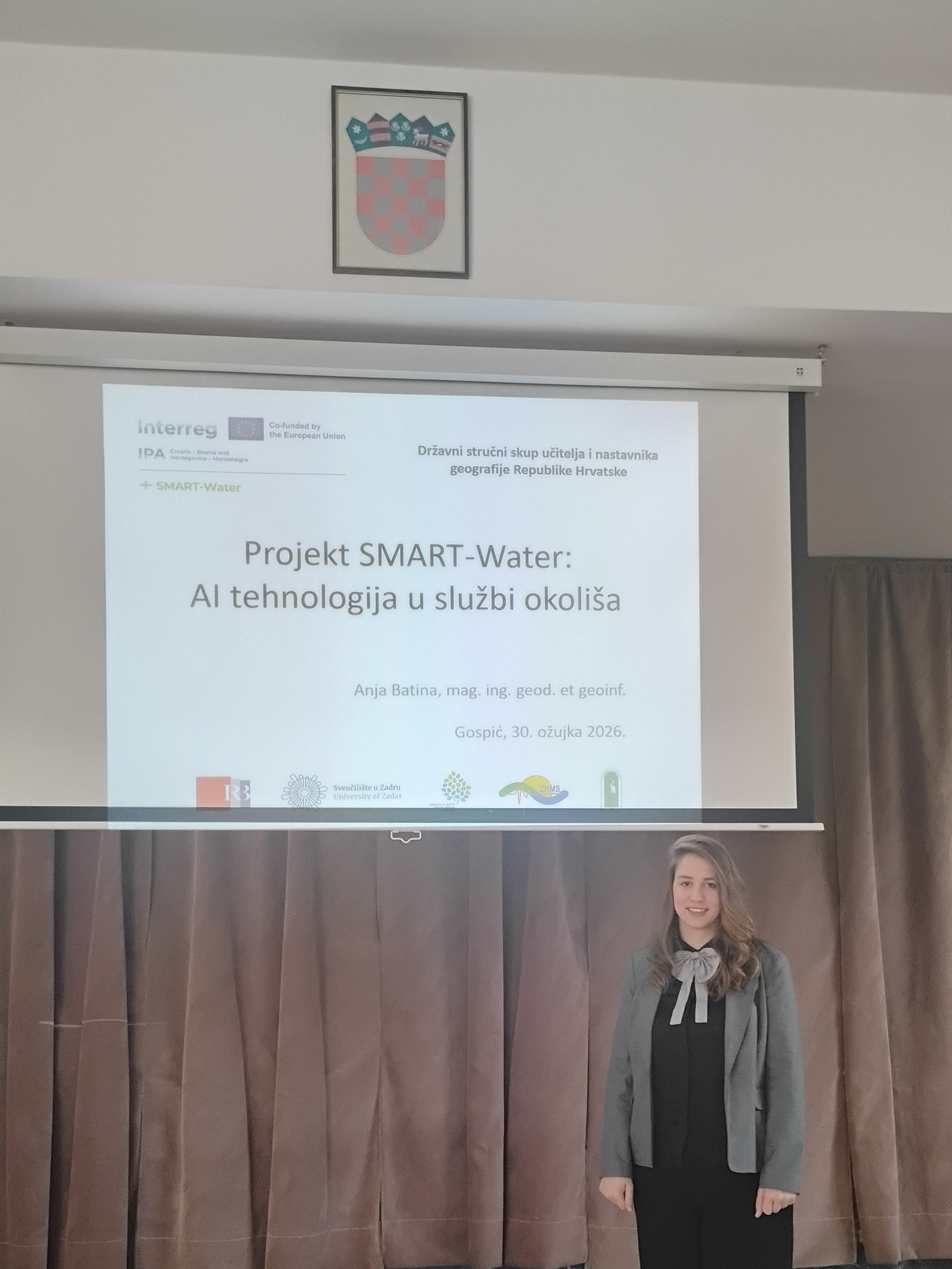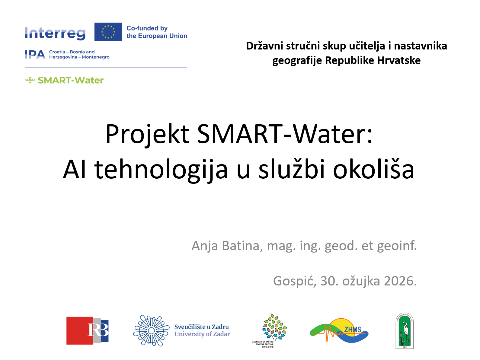 Na Državnom stručnom skupu učitelja i nastavnika geografije, članica našeg Centra, Anja Batina predstavila je projekt SMART-Water, koji integrira daljinska istraživanja, terenska mjerenja i umjetnu inteligenciju u svrhu praćenja kakvoće voda u gotovo stvarnom vremenu. Projekt se temelji na povezivanju različitih izvora podataka: satelitskih snimaka, in situ i laboratorijskih mjerenja, GIS analiza i modela strojnog učenja. Ovakav pristup omogućuje ne samo praćenje trenutnog stanja, već i prepoznavanje promjena te predviđanje kakvoće vode, što je ključno za pravovremeno djelovanje i očuvanje vodenih ekosustava. Poseban naglasak stavljen je i na edukaciju kroz uključivanje učenika, studenata i nastavnika, projekt doprinosi popularizaciji znanosti i podizanju svijesti o važnosti zaštite okoliša.
