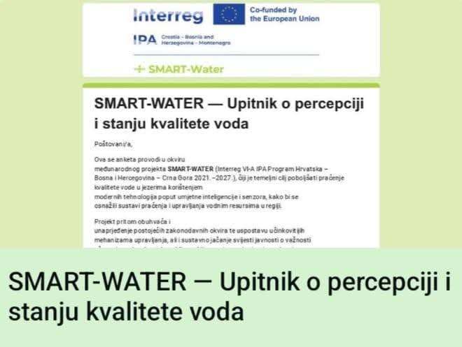 U sklopu projektne aktivnosti „Public perception of water quality in three research areas“, na Deranskom jezeru u Parku prirode Hutovo blato provedena je anketa o stavovima lokalnog stanovništva prema kvaliteti jezerske vode i njihovoj spremnosti na moguće promjene. Anketiranje su proveli Izv. prof. dr. sc. Silvija Šiljeg, voditeljica SMART-Water projekta i Prof. dr. sc. Ante Šiljeg. Projekt uključuje uvođenje naprednih modela umjetne inteligencije te višesenzorskih tehnologija za praćenje kvalitete vode, a dobiveni rezultati poslužit će razvoju održivih mjera prilagođenih očuvanju jezerskih ekosustava.