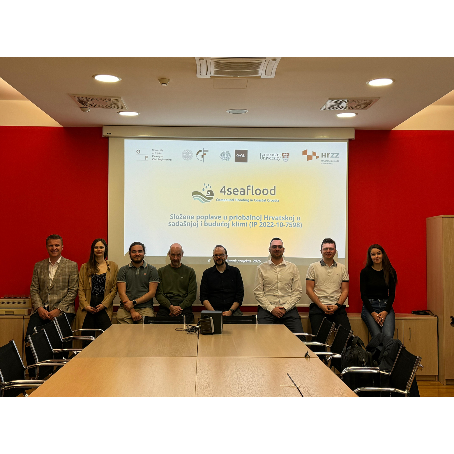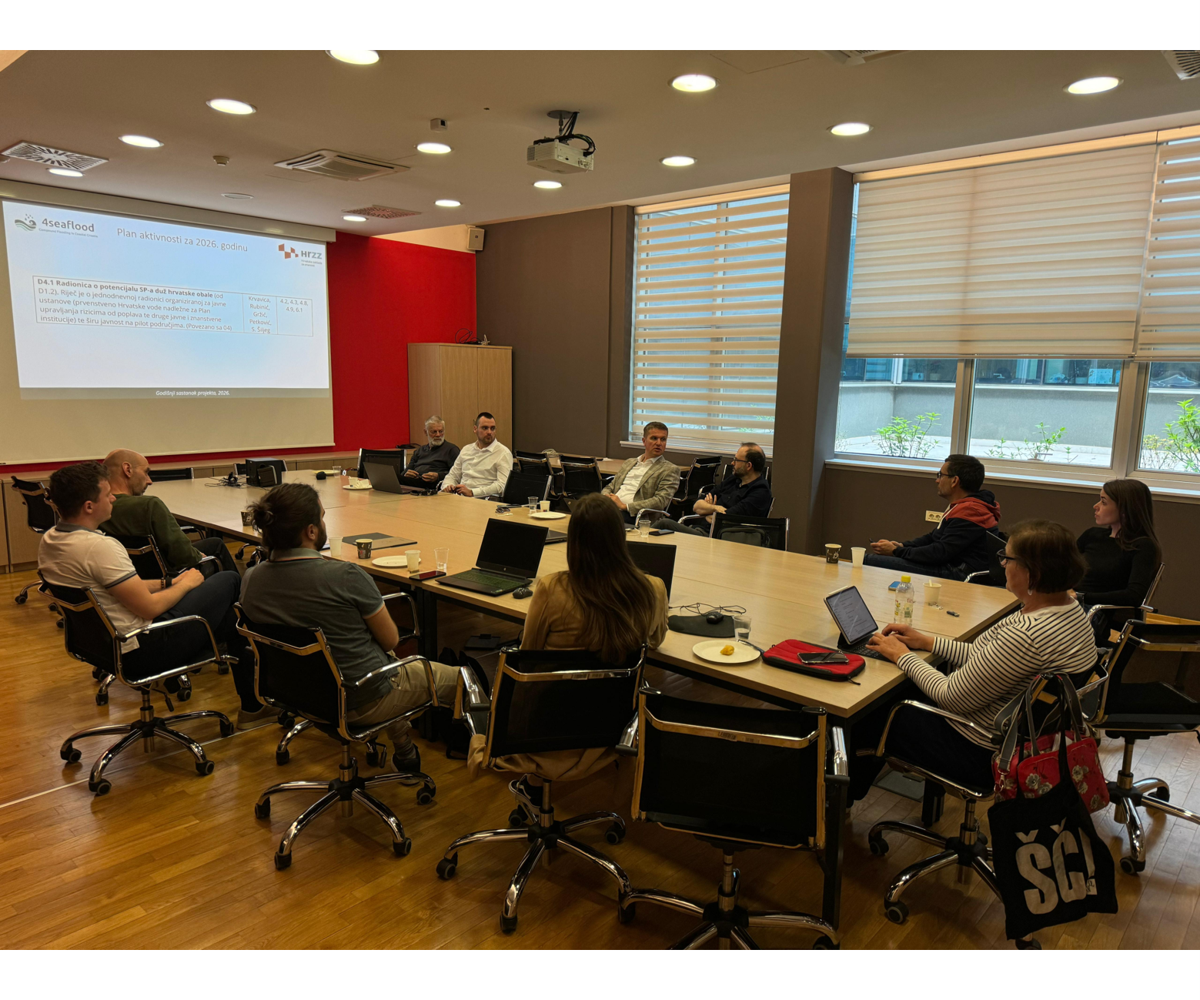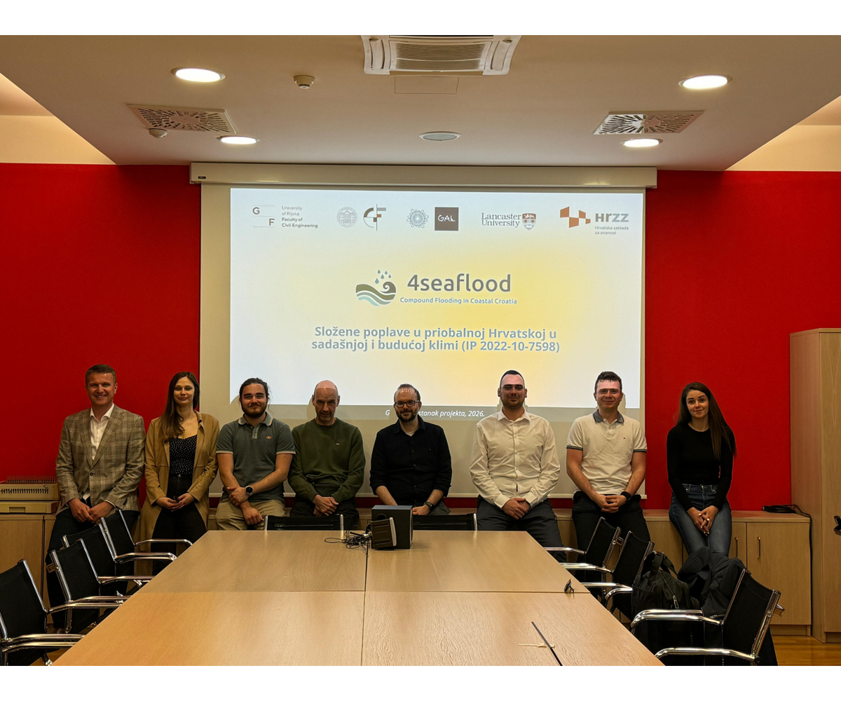 Dana 9. travnja 2026. članovi Centra za geoprostorne tehnologije, prof. dr. sc. Ante Šiljeg, dr. sc. Lovre Panđa i Rina Milošević, mag. geogr., sudjelovali su na godišnjem sastanku znanstveno-istraživačkog projekta 4SEAFLOOD – Compound Flooding in Coastal Croatia under Present and Future Climate, održanom u Rijeci. Projekt financira Hrvatska zaklada za znanost, a provodi se u razdoblju 2023.–2027. pod vodstvom Građevinskog fakulteta Sveučilišta u Rijeci. Cilj projekta je istraživanje složenih poplava u priobalnim područjima Hrvatske, koje nastaju kombiniranim djelovanjem više izvora opasnosti poput visokih razina mora, obilnih oborina, riječnih dotoka i valova. Tijekom sastanka predstavljeni su dosadašnji rezultati istraživanja, napredak na pilot-područjima te planirane aktivnosti usmjerene na razvoj inovativnog metodološkog okvira za procjenu rizika i izradu karata opasnosti od poplava. Sudjelovanjem u projektu članovi GAL-a doprinose primjeni geoprostornih tehnologija, analizi prostornih podataka i jačanju otpornosti hrvatskih obalnih područja na klimatske promjene i ekstremne hidrološke događaje.