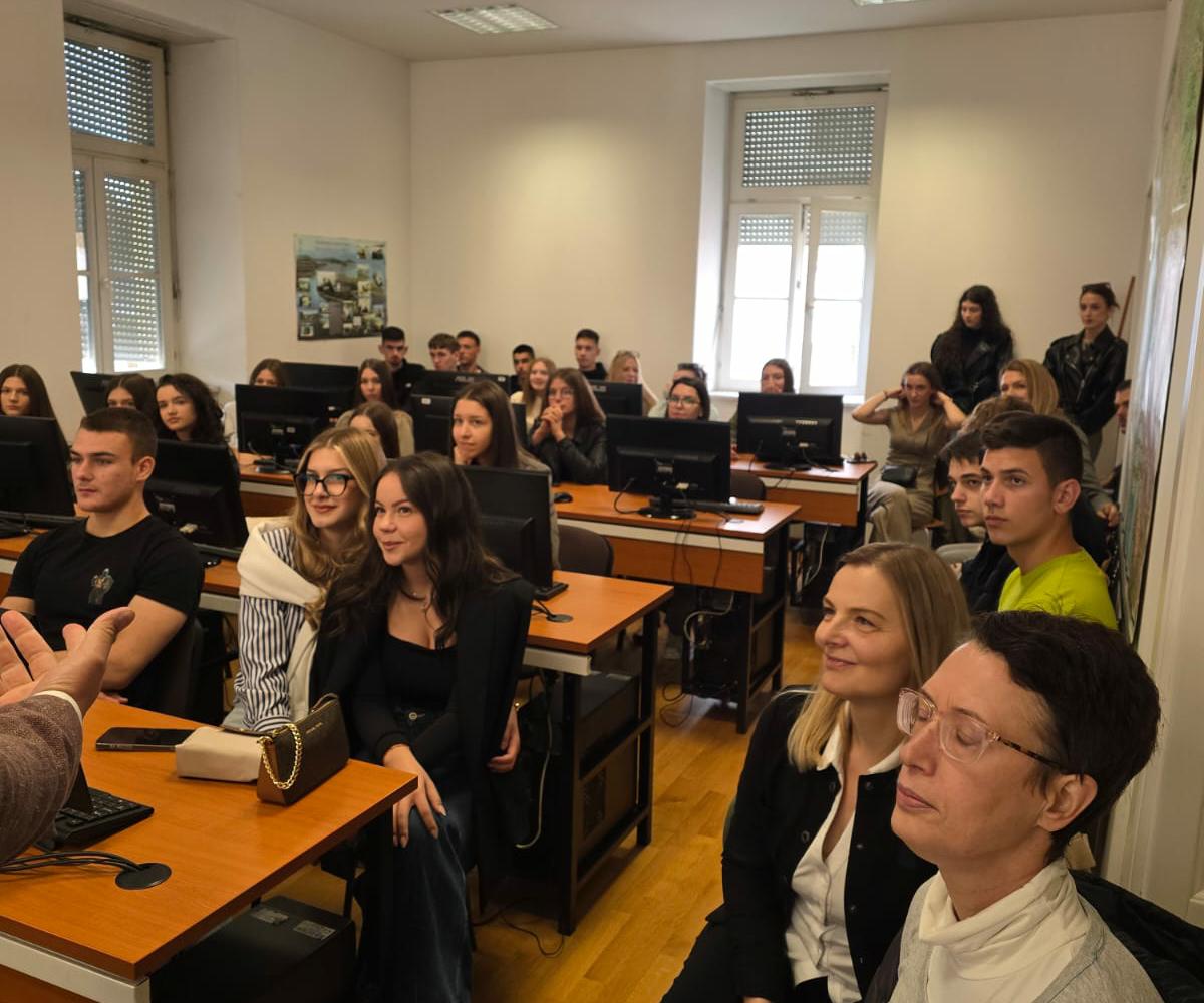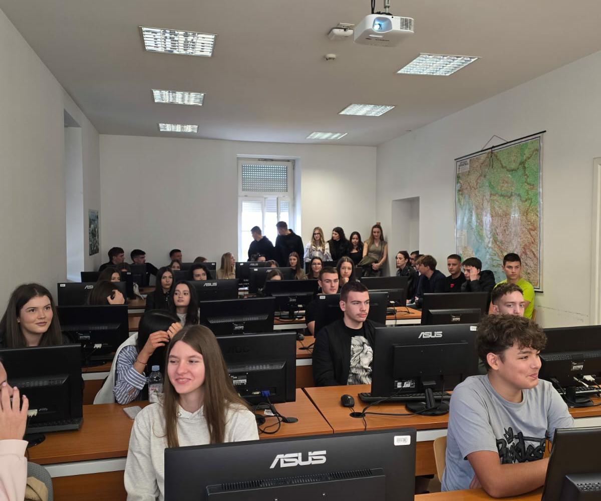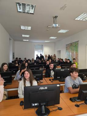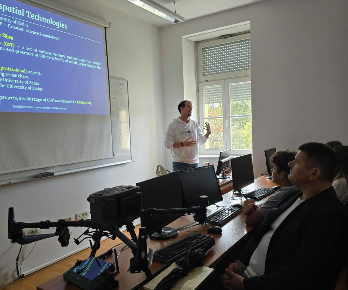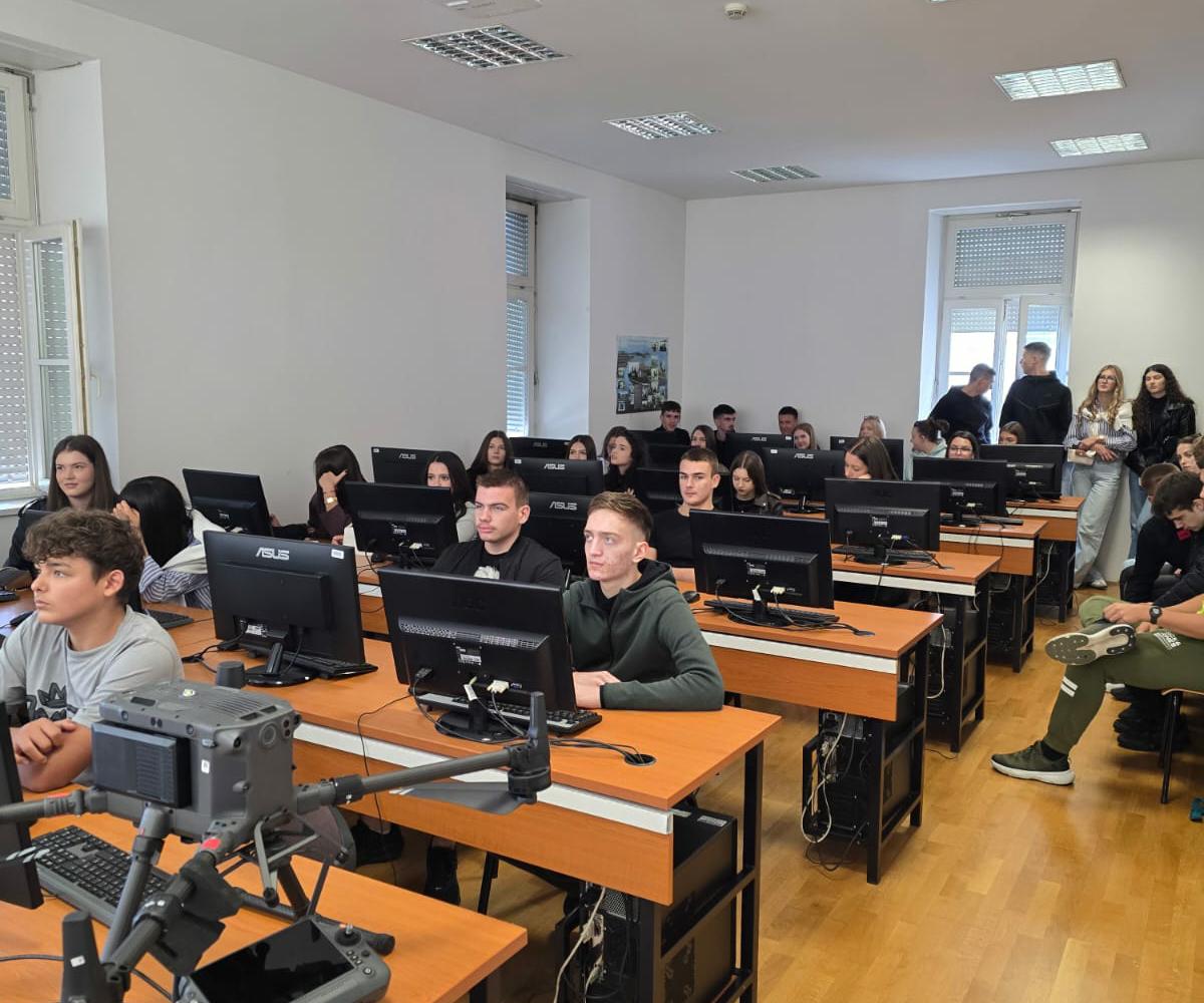 U Centru za geoprostorne tehnologije (GAL) ugostili smo učenike opće gimnazije i ekonomskog smjera Srednje škole Tina Ujevića, Vrgorac, koji su odslušali predavanje o djelovanju Centra i primjenama geoprostornih tehnologija u znanosti i praksi. Učenicima smo predstavili primjere projekata iz nadzora okoliša i upravljanja vodnim resursima, demonstrirali osnovne postupke daljinskih istraživanja i GIS-analiza te raspravili mogućnosti budućeg obrazovanja i karijera u području geoprostornih tehnologija. Posjet je zaključen kratkom demonstracijom rada bespilotnih letjelica.