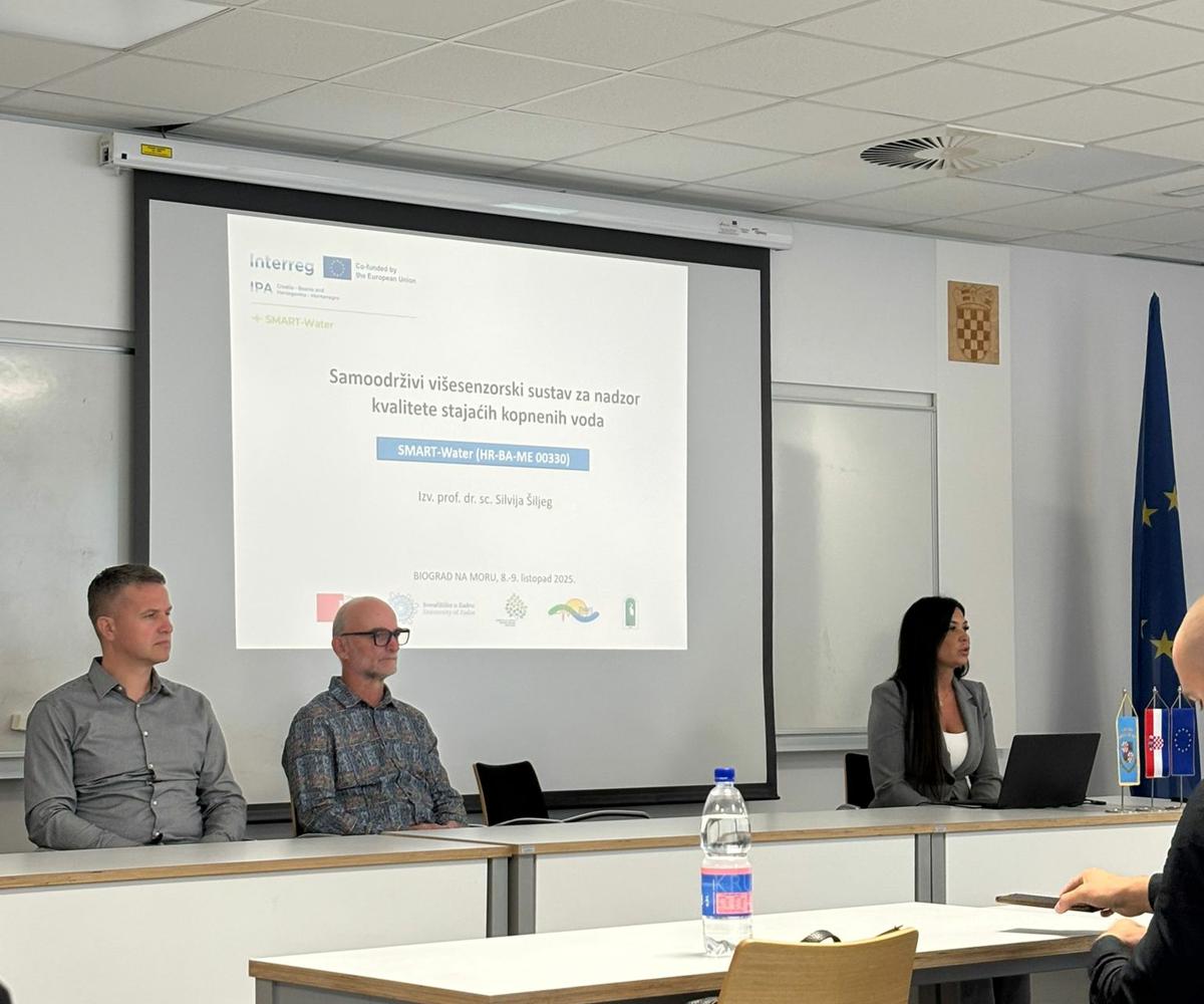 Centar za geoprostorne tehnologije (GAL) sudjelovao je na svečanom predstavljanju međunarodnog projekta SMART-Water u Biogradu na Moru, usmjerenog na očuvanje kvalitete kopnenih voda i biološke raznolikosti jezerskih ekosustava kroz primjenu suvremenih tehnologija, umjetne inteligencije i zajedničkih prekograničnih mjera. Projekt se provodi u okviru Interreg VI-A IPA Programa Hrvatska – Bosna i Hercegovina – Crna Gora 2021.–2027., ukupne vrijednosti 1.532.652,51 eura, uz 85 % sufinanciranja Europske unije, u razdoblju od 1. kolovoza 2024. do 31. srpnja 2027. Nositelj je Institut Ruđer Bošković, a partneri su Sveučilište u Zadru, Park prirode Hutovo blato (BiH), Zavod za hidrometeorologiju i seizmologiju Crne Gore te Agencija za zaštitu životne sredine Crne Gore. SMART-Water obuhvaća tri pilot lokacije – Vransko jezero (HR), Deransko jezero (BiH) i Skadarsko jezero (CG) – gdje će se razvijati napredni modeli praćenja kvalitete vode temeljeni na kombinaciji satelitskih snimaka, in-situ mjerenja i umjetne inteligencije, uz snažno uključivanje lokalnih zajednica, znanstvenika i donositelja odluka. Na predstavljanju u Poduzetničkom inkubatoru u Biogradu na Moru program je otvorio prof. dr. sc. Zvjezdan Penezić (Sveučilište u Zadru), a uvodno predstavljanje projekta održali su izv. prof. dr. sc. Neven Cukrov (IRB) i izv. prof. dr. sc. Silvija Šiljeg (Sveučilište u Zadru). Uslijedila su još izlaganja: Anje Batine o okviru za praćenje zdravlja jezerskih ekosustava i procjenu kvalitete vode, Marije Dugandžić o značaju praćenja voda za očuvanje prirodne baštine, Jane Vukotić o terenskoj metodologiji ZHMS-a te dr. sc. Sandija Orlića o „Mikrosvijetu u Vranskom jezeru“. Nakon stručnog dijela, na Biogradskoj rivi održan je „GeoTech dan“ posvećen pametnim rješenjima za očuvanje kvalitete vode, s izrazitim edukativnim karakterom: 275 djece vrtićke, osnovnoškolske i srednjoškolske dobi kroz demonstracije upoznalo se s važnosti očuvanja voda i primjene novih tehnologija. Zahvaljujemo ravnateljici Dječjeg vrtića Ivana Brlić-Mažuranić Biograd na Moru i ravnateljima Osnovne škole Biograd na Moru i Srednje škole Biograd na Moru na podršci i sudjelovanju.